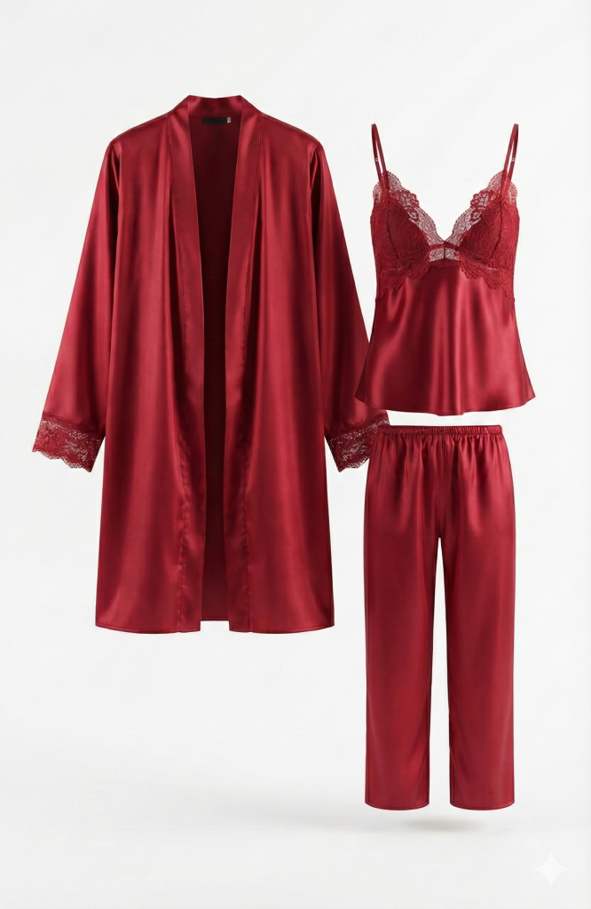 لباس خواب ساتن زنانه سه تیکه اما EMA کد ۴۰۵۰
